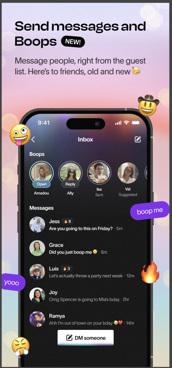 You can also start a message by clicking on someone's profile from your Mutuals list (aka people you've partied with before!) or the guest list of an event.